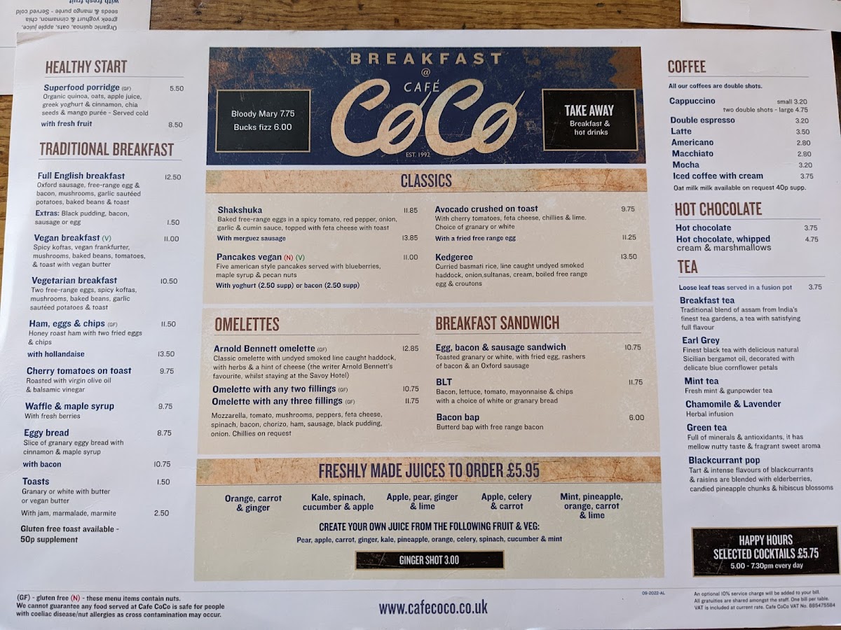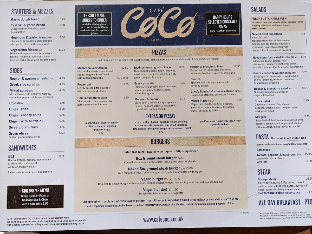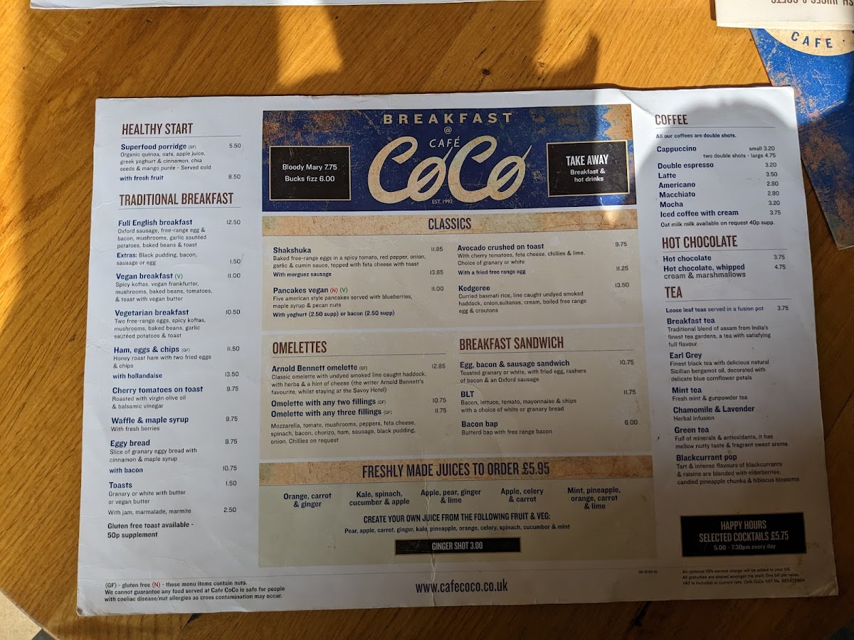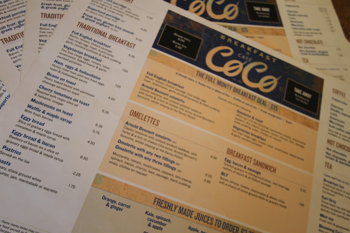 Cafe Coco. Menu